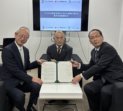ジクシス株式会社(本社:東京都港区、代表取締役社長:田中惠次)、ニイミ産業株式会社(本社:愛知県春日井市、取締役社長:新美良夫)および株式会社エネサンス中部(本社:愛知県海部郡蟹江町、代表取締役社長:田部克志)は、LP ガス の配送合理化を目的とした業務連携に関する基本合意書の調印式を2025年12月15日に執り行いました。
