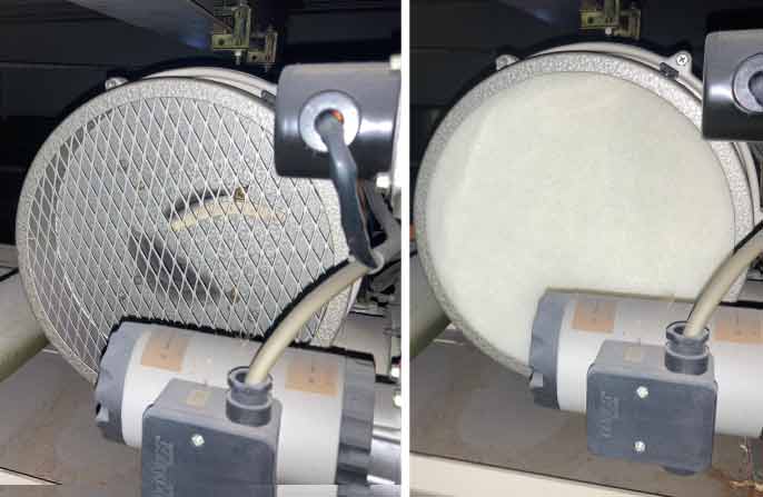 燃焼ブロアの吸気不良 (吸気フィルタが無い場合)