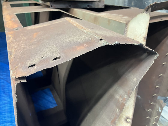元々鉄板の厚みが薄かったことに加え、経年劣化により1㎜以下にまで薄くなっており、少しの衝撃で破損してしまう状態でした。