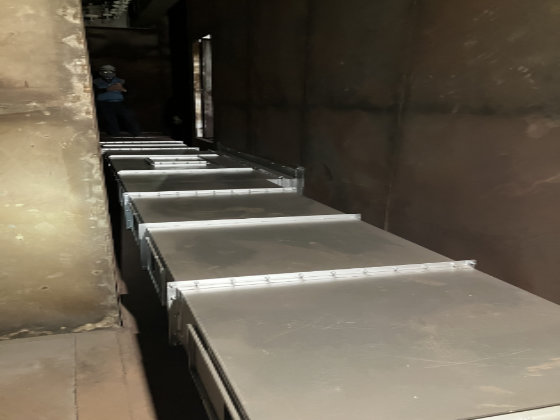経年劣化によりダクト上面に大きな穴が開き、鉄板の折り目、ダクト同士の継ぎ目などに隙間が開き、熱風が漏れてしまい、乾燥炉内へ均等に熱が伝わらなかったため温度上昇の偏りが発生したと判明しました。